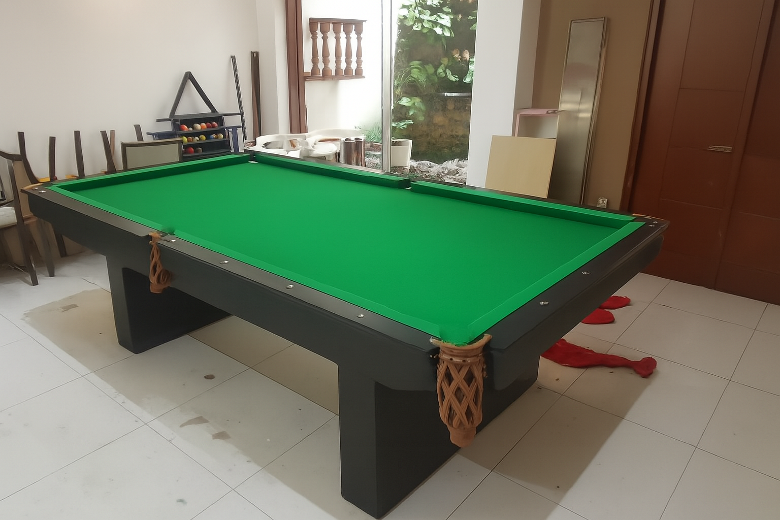 - Accesorios incluidos: Juego de bolas, tacos, triángulo, tiza, taquera mixta.