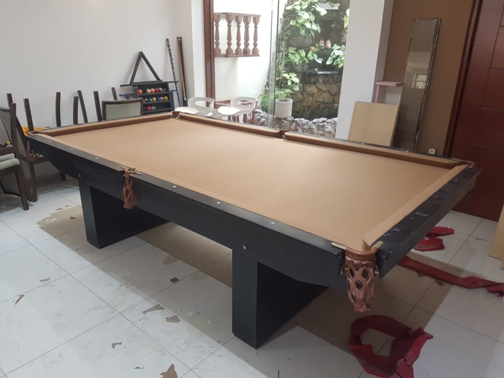 La mesa de billar American que presentamos combina diseño sobrio, estructura robusta y una estética pensada para integrarse con armonía en espacios residenciales o recreativos. Su superficie de juego en tono beige claro aporta calidez visual, mientras que el marco y las patas en acabado oscuro generan un contraste elegante y moderno.